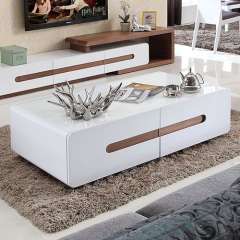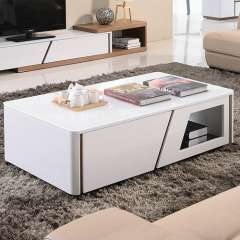 MDF咖啡桌在高光泽白色与饰面(C215)