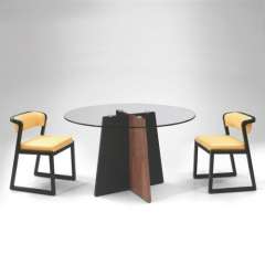 单板MDF木制餐桌与圆形玻璃顶(A286A)
