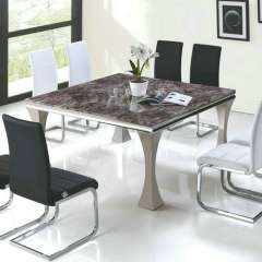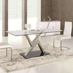 矩形玻璃餐桌带MDF和不锈钢腿(A286)