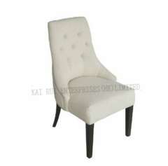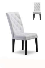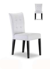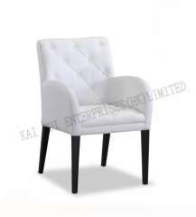 现代白色亚麻纤维PU餐椅木腿