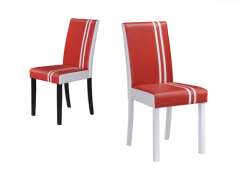 现代红色和白色PVC皮革餐椅与木腿
