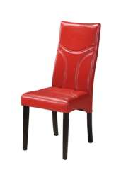 现代红色PVC皮革餐椅与木腿