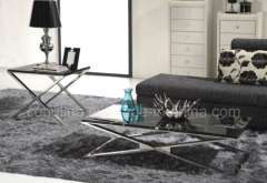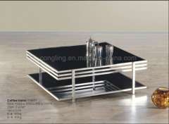 简单设计坚硬玻璃不锈钢咖啡桌家具