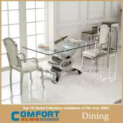 现代餐厅顶玻璃不锈钢餐桌出售