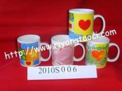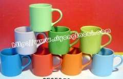 生产销售淄博陶瓷色釉杯 | 炻瓷漏斗杯 | 出口卡通盘碗广告杯系列