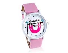 圆形表盘妇女的模拟手表与仿皮带(粉红色) M.