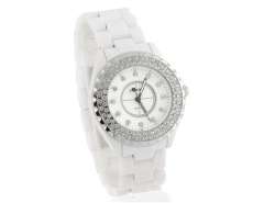 SINOBI男子的圆形表盘模拟石英表陶瓷表带水晶摆件(白) M.