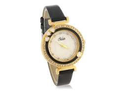 圆形表盘女装模拟石英手表钻石装饰 (黑色) M。