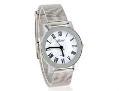Shshd女子圆形表盘模拟手表与合金表带(白) M.
