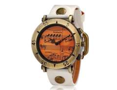 WOMAGE568-1女子音符圆形表盘模拟显示腕表(白) M.