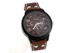 耐水运动模拟石英表与人造皮革表带 (布朗) M。