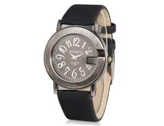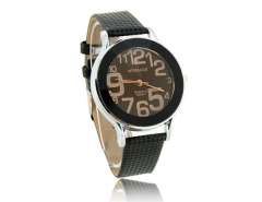 防水石英机芯模拟手表与仿皮表带(黑色) M.