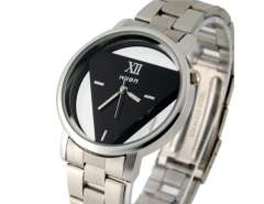 Wilon男女不锈钢手表与三角形众议院板(黑色) M.