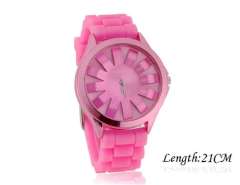 WoMaGe菊花形女装腕表与纹理块状硅胶手环(粉红色) M.