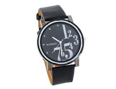 WoMaGe圆形表盘石英电子手表与仿皮表带(黑色) M.