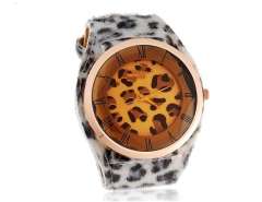 WoMaGe A35妇女的模拟手表与豹皮纹表带(白) M.