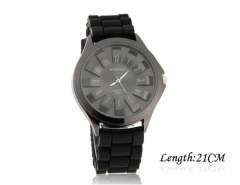 WoMaGe菊花形女装腕表与纹理块状硅胶带(黑色) M.