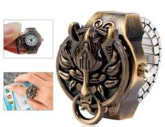 狼头最终幻想石英机芯模拟戒指手表用铜镀合金表带M.
