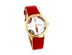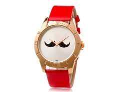 女子胡子图案的圆形表盘模拟手表与仿皮带(红色) M.