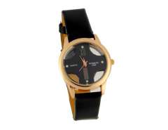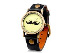 女子胡子图案的圆形表盘模拟手表与仿皮表带(黑色) M.