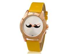 女子胡子图案的圆形表盘模拟手表与仿皮带(黄色) M.
