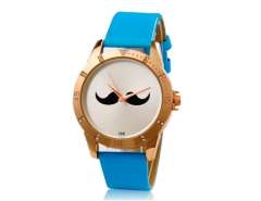 女子胡子图案的圆形表盘模拟手表与仿皮表带(蓝色) M.