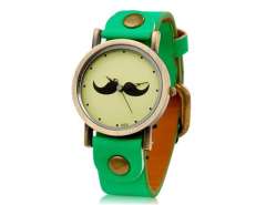 女子胡子图案的圆形表盘模拟手表与仿皮带(绿色) M.