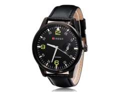 CURREN圆形表盘模拟手表与PU皮表带及数据显示(黑色) M.