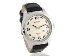 男士时尚防水模拟手表与PU皮表带(白) M.
