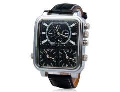 矩8010男士防水模拟手表与仿皮表带(黑色) M.