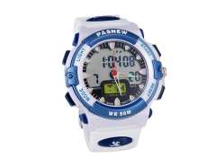 PASNEW 048C塑胶电子石英机芯LED体育模拟手表与日期灯(白) M.