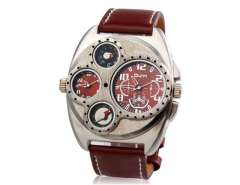 男子双表盘石英模拟运动手表温度计和指南针(布朗) M.