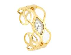 椭圆形表盘钢带手表女士(金色和白色) M.