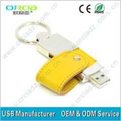 流行的促销赠品,个性化皮革钥匙扣 usb 闪存彩色旋转优盘