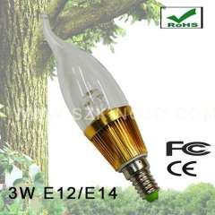 3W LED 蜡烛灯泡 E12/E14/E27 底