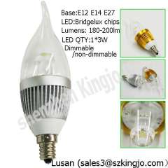 最畅销的E12可调光3瓦特小LED蜡烛灯