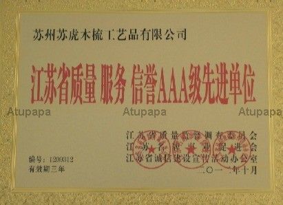 苏州苏虎木梳工艺品有限公司拥有完整, 科学的质量管理体系. 诚信, 实力和产品质量获得业界的认可. 欢迎各界朋友莅临苏州苏虎木梳工艺品有限公司参观, 指导和业务洽谈.