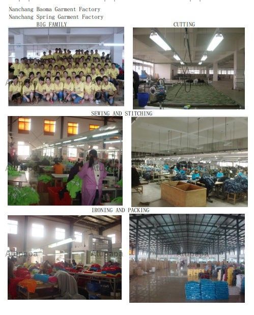 我们拥有2个工厂,南昌春季服装厂是专业的高品质camo t恤,裤子和夹克,生产力每年800 000 pcs。南昌宝马制衣厂专业生产快干袋,牛仔裤和时尚女装,年生产能力超过150000PCS。在过去20年中,我们已经开发了许多优秀的面料和配件供应商,我们不会停止改善自己,赢得您的信任!