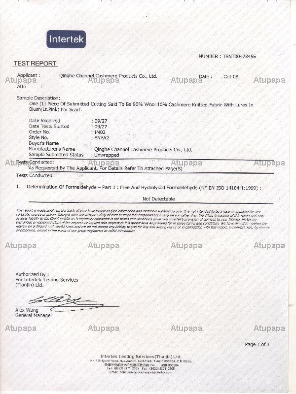 QINGHE CHANNEL CASHMERE PRODUCTS CO. Ltd Which a manufacture and exporter of cashmere, wool scarf shawl and other assesories. Our head company is factory is cashmere raw dehair factory, which dehair goat's wool cashmere fiber into pure cashmere then we use these fiber to produce scarf shawls knitwear etc.