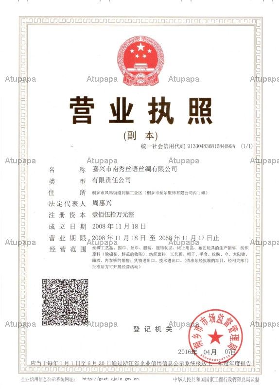 Jiaxing Nation Silk Co., Ltd. Was established in 2002. Our company is located in Tongxiang, which is near HangZhou and Shanghai and famous for 'the land of Silk'. We are specializing in silk, polyster pashmina, cashmere, wool, Cotton, viscose etc weaved materials.