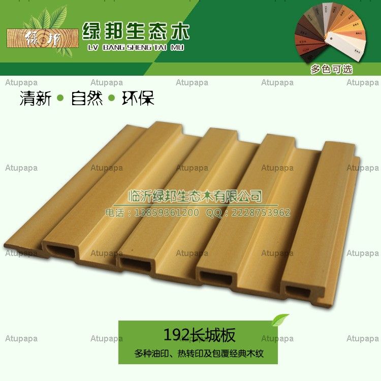 绿邦品牌隶属于临沂绿邦生态木有限公司是集研发设计, 生产加工, 市场营销于一体的专业生态木厂家, 2004年引进欧洲木塑型材生产技术. 生产出合格的环保型复合材料 临沂绿邦品牌并投入市场. 目前, 其销售范畴已涉及全球各地. 绿邦是由聚乙烯树脂, 木粉, 谷糠, 竹粉及其他可再生材料和压相结合的专业木材, 塑料技术和设备. 主要产品分为地板系列, 园林配套系列, 装饰墙板系列, 吊顶系统系列(即生态木天花). 作为中国的新型环保建材先驱之一 , 我们一直保持长期合作关系中国农业大学, 山东大学大学, 青岛理工大学, 许多学校和在中国研究机构等等. 我们已经开发出具有自主知识产权, 通过吸收国外先进技术产品. 该产品不仅保持了木材, 包括木材纹理和粮食的自然属性, 而且还具有防水, 耐火, 耐腐蚀, 耐高低温, 抗老化, 可回收等特点, 因此它可以完全满足要求室外花园, 港口, 市政工程和室内装饰施工 , 加上我们生态木价格实惠公道, 现已赢得了国内外市场的青睐, 而且有着良好的口碑. 我们的生态木产品还通过SGS权威机构检测, 产品绿色环保. 2009年, 山东亚运会它被指定为专业的施工材料, 我们的产品是经得起市场考验的有保障产品.