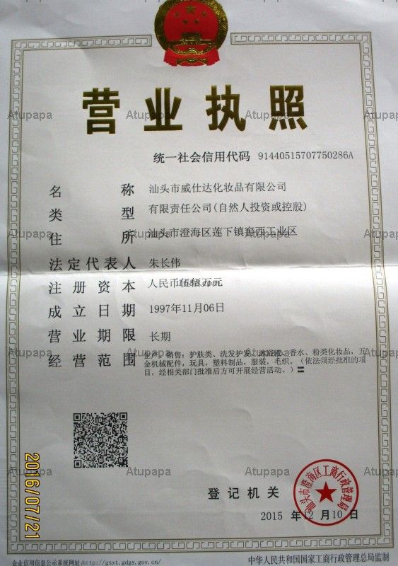 汕头市威仕达化妆品公司成立于1998年, 多年来本公司凭着不断进取的精神, 引进国内外设备以及台湾香港最先进的技术方法, 采用国内外优质原材料, 严格按照ISO9001的质量标准严格要求, 重视人才的挖掘和培养, 逐步建立了强大的销售网络, 从而使公司保持了高速的发展. 我们公司从成立初始一直注重与国际大公司在原材料供应和技术开发方面的合作, 从而使公司在各个方面得到了长足的进步. 我们在国内有多个市场畅销的品牌, 同时我们也为国内外的客户提供OEM和ODM. 公司11年开始全力发展电子商务渠道, 特别在护肤系列产品的生产和供应方面具有很大的优势, 欢迎电商渠道商家和我们公司进行深度合作.
