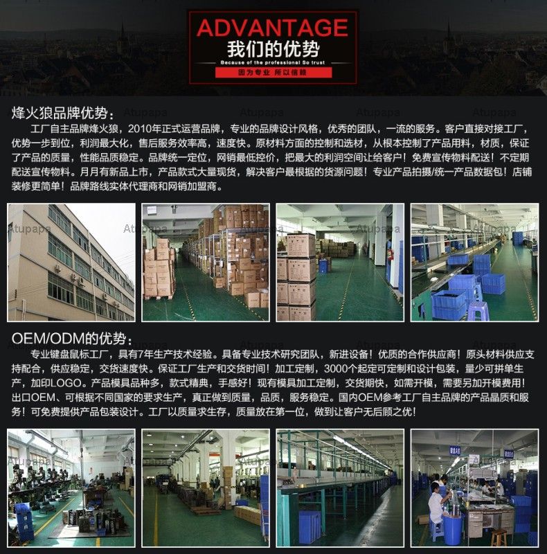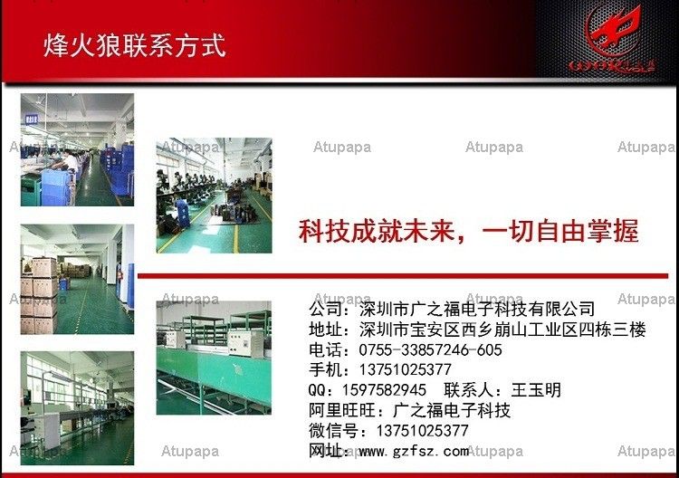 深圳市广之福科技有限公司是一家致力于电脑周边配件产品研发, 设计, 生产和销售的现代化高科技企业. 公司座落于交通便利的深圳宝安区西乡圈内, 凭借得天独厚的地理优势, 在短短几年内已发展成为行业中具有一定影响力的知名企业. 公司秉承 '科技为主体, 质量为根本' 的经营理念, 始终坚持自主创新, 精益求精, 以卓越的产品质量和经典的时尚设计博得用户信赖. 成为拥有领先品牌的龙头企业是全体员工的共同目标. 如今烽火狼品牌电脑外设产品等系列产品已经凭借自己新颖的创意, 精湛的工艺, 上乘的品质和贴心的服务赢得广大顾客的青睐. 公司现拥有一支高素质的管理和技术队伍, 历经多年积淀, 员工学历, 能力, 工作经验已与所在岗位达到高度适配. 公司凭借雄厚的技术实力和专业水平, 为客户提供技术合作和质量保证. 同时, 积极推行 ISO9001:2008标准规范管理, 建立生产和服务质量保证体系. 以 '以质求精, 以新求变, 以人为本, 以诚信为宗旨, 不断持续改进以满足客户需求' 为行动指南, 朝着产品品质零缺陷的目标迈进, 精益求精, 追求卓越, 塑造工艺一流, 品质一流, 服务一流的电子产品企业. 烽火狼品牌目标是将产品和 '时尚, 科技, 个性, 游戏, 生活' 的消费理念有机结合在一起, 它们分别代表了烽火狼对外设产品在未来几年发展趋势的理解: 时尚----时尚不是捉摸不透的, 烽火狼助您引领时尚消费潮流; 科技----烽火狼品牌, 每一次小突破都是大创新, 只为给您最贴心的服务; 个性----张扬你的个性, 凸显你的魅力, 烽火狼, 成就您的超凡脱俗; 生活----全新生活, 奢华享受, 就这么简单! 让烽火狼点燃您的激情, 完美您的创意, 彰显您的魅力!