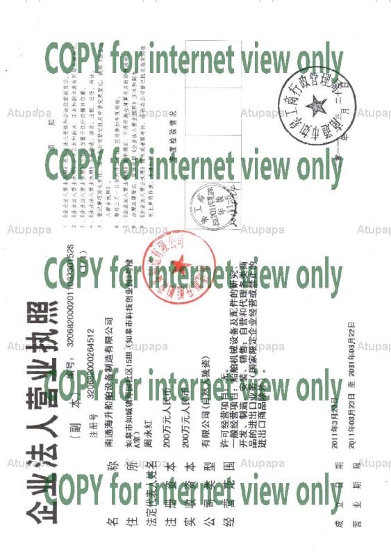 | 地址 | No.20 HuaShi North Road, Rugao City 226500, Jiangsu, China(请用顶部导航) |
