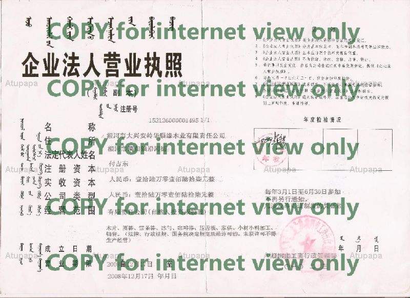 无矿物线和水线, 质地坚韧, 原因是生长于大兴安岭原始森林之中.