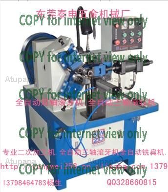 东莞宗昌五金机械有限公司. (泰申机械) 公司专业自动车床二次加工机. 自动车床件加工. 电子烟五金件. 电脑压花螺母. 司主要制造自动车床加工车件的后续精密加工设备: 如加长单, 双边或料中间铣面剖槽 (平行切削, D型面, 平行面, 一字槽, 长条孔, 十字切削 (角度90度范围内可调, 如十字槽, 锐角面或槽等) ,钻孔 (角度90度范围内可调, 孔轴线与所铣面垂直或平行或交角成锐角) ,绞孔, 攻丝, 倒角, 缩口 (如十字槽或一字槽等) 等. 适用于各种轴/ 套类零件 (如马达轴芯, 打印机复印机轴芯, 各类电子通信产品调谐轴传动轴及铰链轴芯) ,电子产品散热器, 电源插头插脚, 灯饰等产品精密配件. 加工件无论材质 (各种金属如铜, 铁, 铝, 不锈钢和非金属件) ,形状 (如轴/ 套类, 矩形类, 正多边形类, 不规则形状类) ,敝司可针对客户产品要求研发定做.
