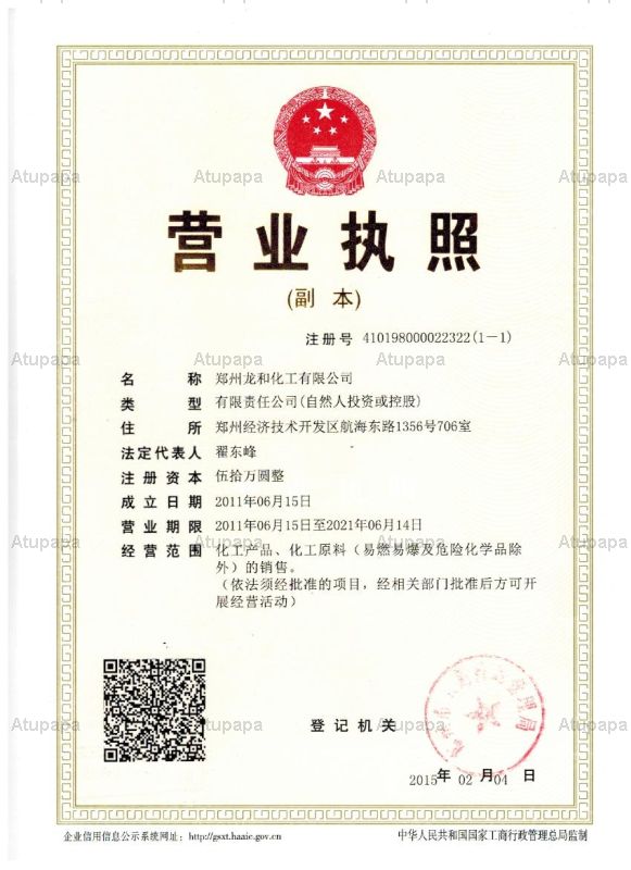 龙和企业拥有一批精明, 强干的科研研发队伍. 专业技术人员 20 人, 工程师 8 人, 总工程师 5 人, 为食品添加剂的销售奠定了坚实的技术基础. 我们计划将在中国地区发展 30 家分公司, 现已发展 12 家, 直至走向世界. 业已成为食品添加剂连锁, 网络销售, 物流配送, 研发, 售后服务为一体的生产供应商. 龙和化工愿与食品生产企业共同创造绿色食品的金秋未来.