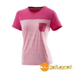【wildland 荒野】女 弹性条纹抗UV圆领短袖上衣 桃红 0A21611 透气 | 休闲 | 机能 | 户外 | 登山 | 露营