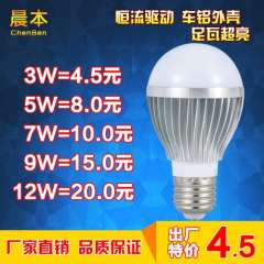 晨本照明led灯泡 | LED球泡3W5W7W9W12Wled车铝球泡灯 | 恒流足瓦超亮