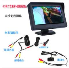 汽车侧视盲区监控影像 | 4.3寸显示器+led夜视灯免开孔摄像头 | 厂家
